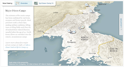 I worked on this interactive graphic about North Korean prison camps last month. It explores the five major camps and goes into detail about camp 15. Laris Karklis did the maps, Blaine Harden wrote the text, and I did the design and build.