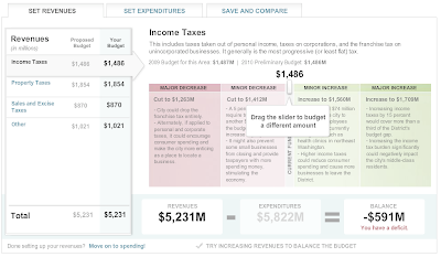 In April we also launched the D.C. budget game, which people can use to learn more about the city budget and what programs would stay or go with varying levels of funding. Users can save their budgets and compare their choices with other users.