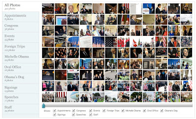 For Barack Obama’s first 100 days, I created this sortable photo gallery that lets readers see exactly what he was doing. Load time is pretty slow, so future iterations will be much leaner.